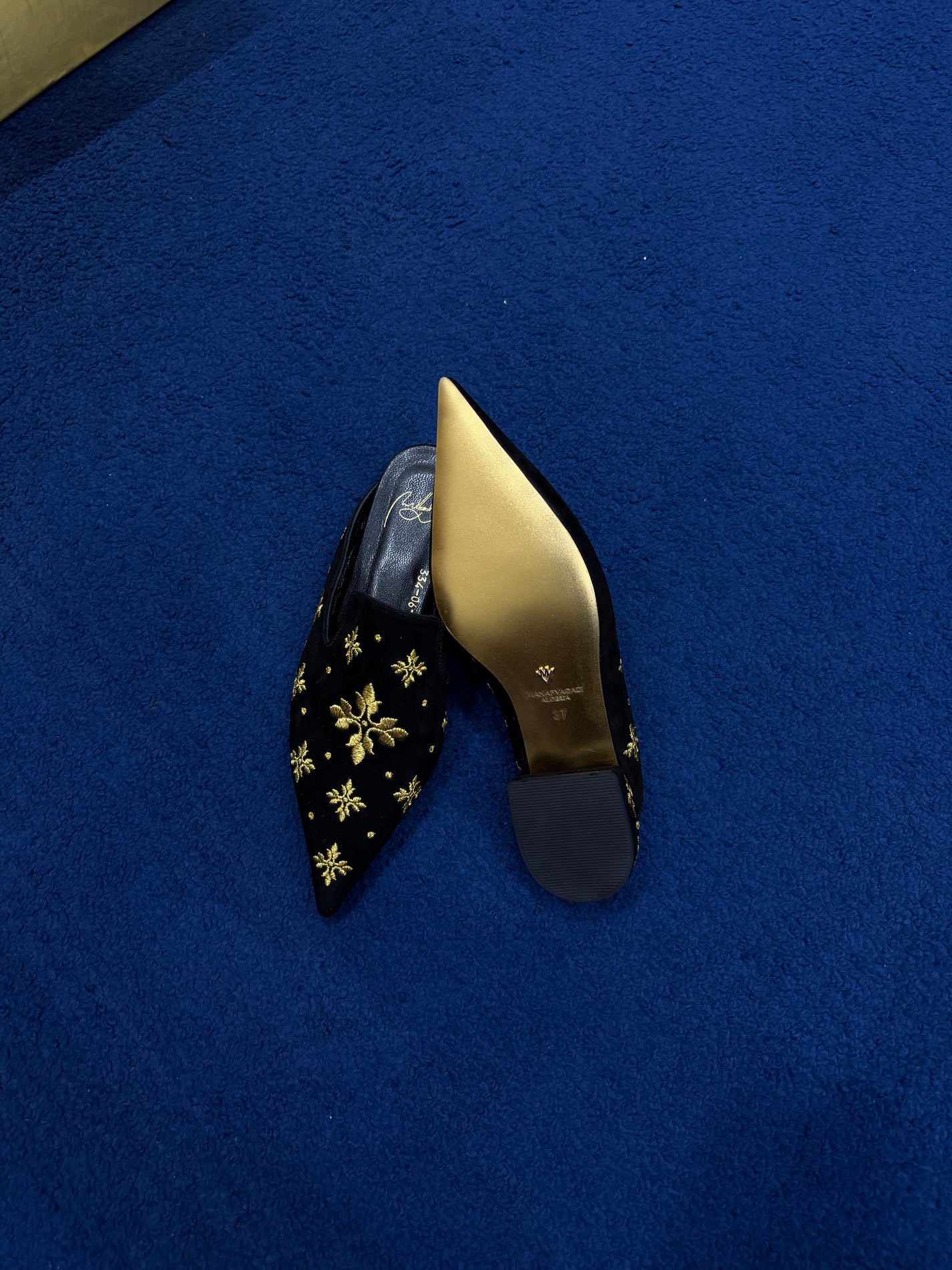 Un talon d'exception sublimé par une broderie royale aux fils d'or, façonnée avec précision au sein de Maison Vagadi. Reposant sur une semelle dorée emblématique, signature lumineuse imaginée par ManafVagadi, Le Mjboud affirme une présence rare et parfaitement Maîtrisée.